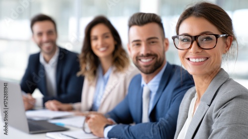 professional, smiling, office, meeting, group, diverse, young, adult, caucasian, hispanic, business, teamwork, collaboration, corporate, work, suit, formal, eyeglass, technology, laptop, conference, discussion, colleague, co-worker, leadership, strategy, planning, communication, interaction, male, female, confident, executive, management, partnership, productivity, team, connection, workspace, modern, success, achievement, motivation, organisation, networking, innovation, skilled, dynamic