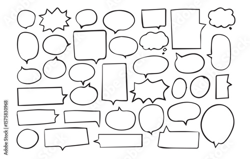 hand-drawn, black-and-white, communication, dialogue, conversation, empty, blank, rounded, rectangular, jagged, graphic elements, design element, creative, illustration, simple, clean, modern, artistic, graphic design, vector, isolated, white background, writing, talking, thinking, expression, message, idea, concept, comic strip, cartoon