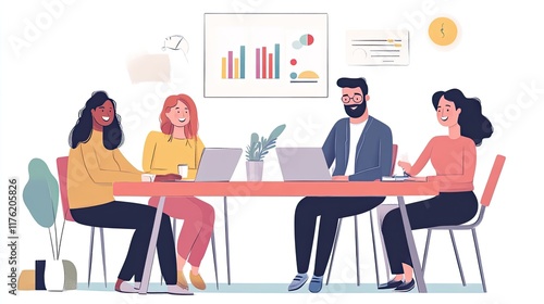 team, meeting, collaboration, teamwork, office, co-worker, colleague, business, people, group, discussion, workplace, strategy, planning, project, work, employee, professional, communication, presentation, brainstorming, idea, innovation, creativity, productivity, success, growth, development, analysis, datum, chart, graph, technology, laptop, computer, table, chair, room, interior, design, happy, smiling, diverse, woman, man, adult, modern, contemporary