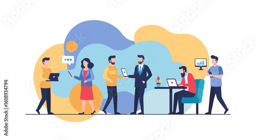 teamwork, collaboration, colleague, business, meeting, office, professional, communication, technology, laptop, tablet, smartphone, project, presentation, success, growth, strategy, innovation, modern, design, illustration, vector, graphic, people, men at work, employee, corporate, businessperson, marketing, digital, datum