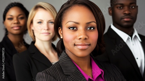 team, diverse, business, professional, confident, teamwork, leadership, success, corporate, people, office, group, employee, communication, collaboration, portrait, leader, businesswoman, businessman, oneness, cooperation, manpower, black woman, white woman, black man