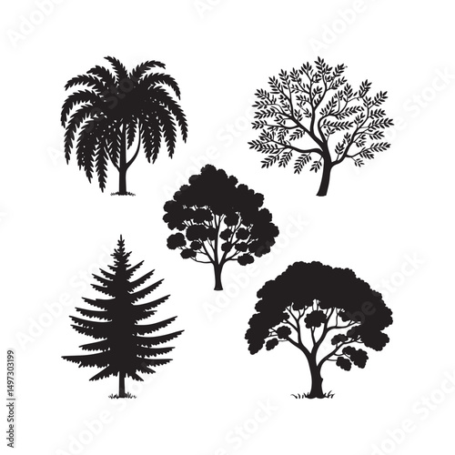 Diverse Tree Silhouettes Collection: Nature and Botanical Elements