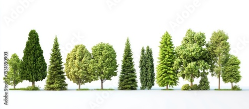 tree, forest, nature, green, plant, landscape, variety, evergreen, deciduous, conifer, full, growth, natural, image, digital, design, collection, composition, arrangement, row, line, isolated, background, white, digital artwork, model, realistic, illustration, perspective, symmetry, detail, colourful, texture, design element, modelling, three-dimensional, vegetation, nature scene, botanical, ecology, environment, spring, summer