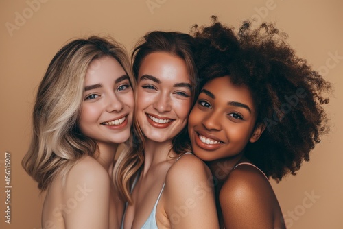 Diversity beauty and natural with woman friends in the colored background, Celebrating Diversity and Natural Beauty with Women Friends Against a Colored Background, Embracing Natural Beauty and Divers