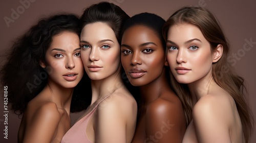 diversity of skin colors and women happy with makeup for cosmetic skincare