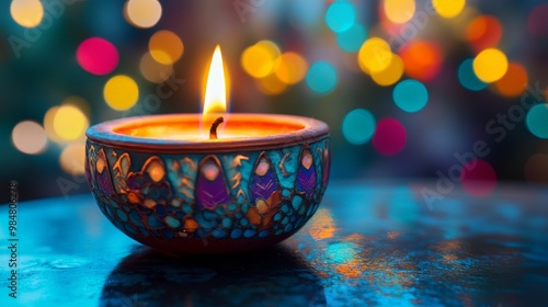 Diwali candles on a table celebration with a colorful background