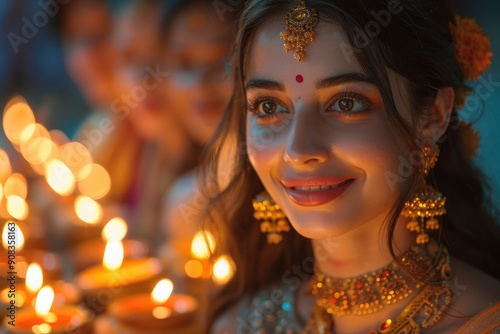 Diwali Deepavali is the main Indian holiday-festival, a festival of lights that symbolizes the victory of light over darkness. candles, lamps, colorful. banner copyspace poster greeting background