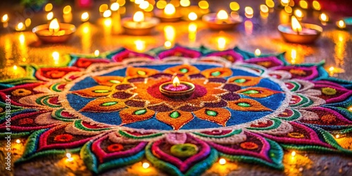 Diwali Rangoli Bokeh Art - Colorful Symmetrical Sand Painting