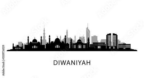 Diwaniyah with Iraq Skyline Black Silhouette.