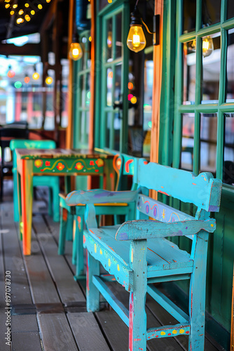 bricolage, patio, furniture, colourful, painted, trendy, creative, hand-made, recycled, vibrant, artistic, bright, rustic, porch, craftsmanship, decor, stylish, unique, customized, wooden, cosy, imaginative, sustainable, deck, bungalow, cheerful, charming, innovative, eclectic, lounge, refresh, refurbish, reclaimed