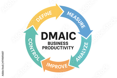 DMAIC cycle for business productivity illustrated with circular arrows.