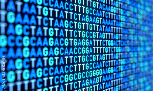 DNA patterns, DNA sequencing gel, genomics, science and genetic analysis, data, DNA testing. 3D illustration