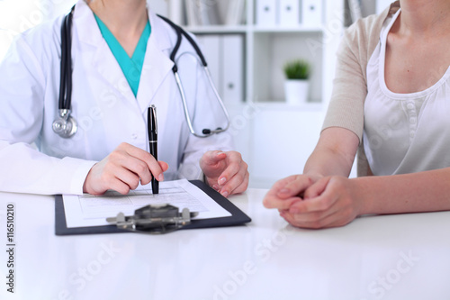 Doctor and patient are discussing something, just hands at the table