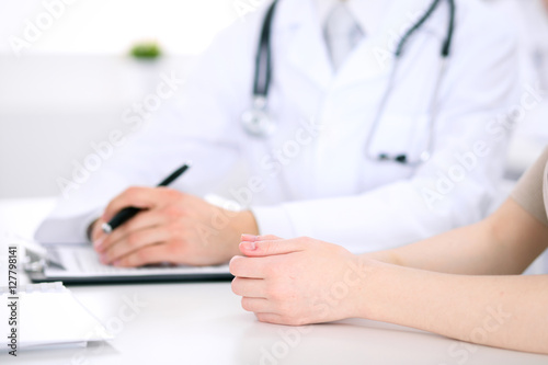 Doctor and patient are discussing something, just hands at the table