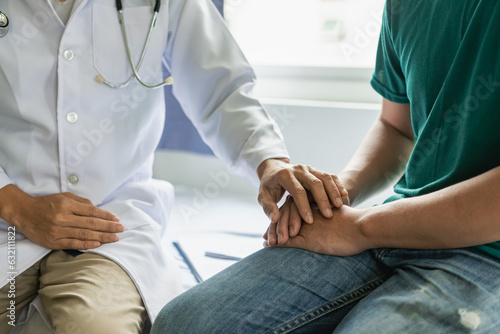 doctor and patient discussing symptoms Discuss problems with patients about medicines and treatment methods, diagnose, sit down and talk. At the table near the window in the hospital medicine concept