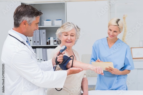 mature adult, man, male, caucasian, senior, elderly, woman, female, young adult, doctor, patient, clinic, profession, expertise, professional occupation, practitioner, medicals, specialist, health care, hospital, holding, exam, disease, sick, health, examining, consulting, labcoat, casual attire, care, diagnose, diagnosis, healthy, measure, medicine, pressure, pulse, test, blood, blood pressure