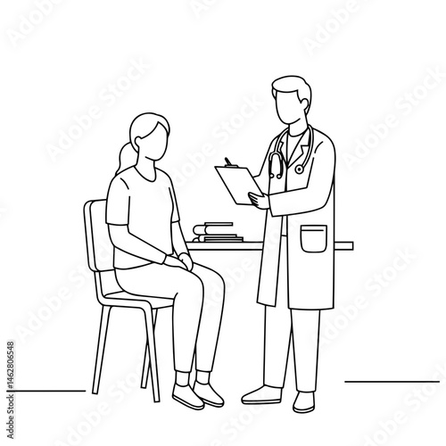 doctor, patient, consultation, medicals, health care, sitting, note, stethoscope, office, checking, professional, well-being, exam, advice, professionalism, listening, support, wellness, visitor, serious, monochrome, outline, assistance, trust, guidance, health care, treatment, questioning, safety, education, check-up, feedback, communication, study