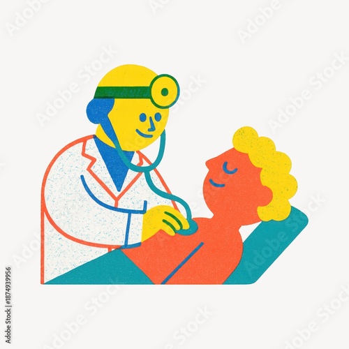 illustration, doctor, shape, colours, pattern, sticker, background, aesthetic, vintage, poster, shadow, dot, decorative, examining, colourful, halftone, cartoon, graphic, patient, texture, design, effect, modern, geometry, medicals, print, view, bed, giving, stethoscope, nostalgic, cheerful, playful, vibrant, style, top, professional, exam, health care, simplified, designed, isolated