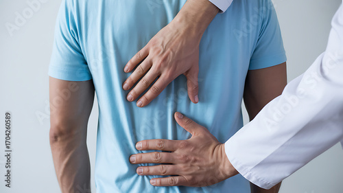 Doctor examining patients back in clinic for medical assistance and healthcare service medical technology