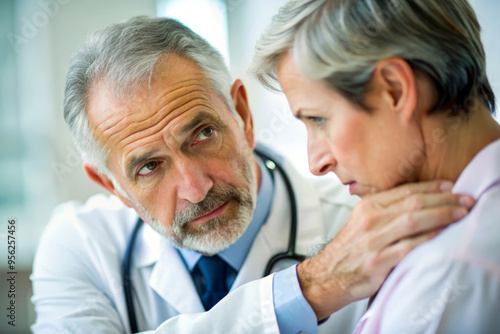 Doctor Examining Patient'S Neck. Healthcare, Medical, Checkup, Doctor, Patient.