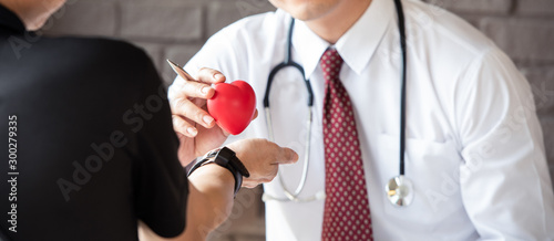 Doctor hand holding red heart, Health care and medical checking concept
