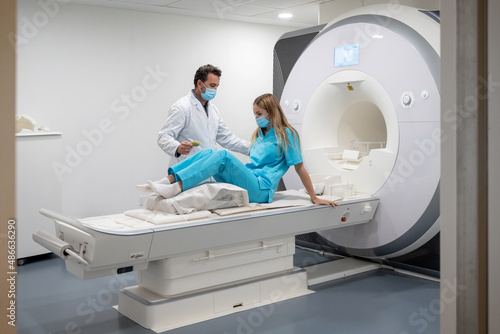 Doctor helping his patient to do an MRI in hospital