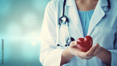 doctor hold healthcare medical icons on blur background. Generative AI