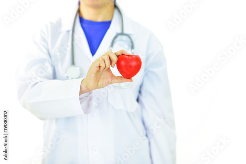 Doctor holding heart in hands, heart care concept