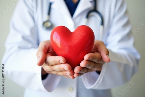 Doctor Holding Red Heart Symbolizing Care, Health, and Medical Profession - Perfect for Healthcare Marketing, Medical Branding, and Wellness Campaigns
