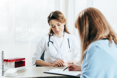 table, paper, beautiful, equipment, adult, woman, texture, caucasian, health, wooden, blood, medicine, health care, medicals, clinical, doctor, hospital, stethoscope, patient, writing, pen, document, signing, agreements, together, togetherness, wood, indoor, textured, surface, profession, attractive, write, clinic, clipboard, donate, donor, professional occupation, two people, copy space, test tube, blood donation, white coat