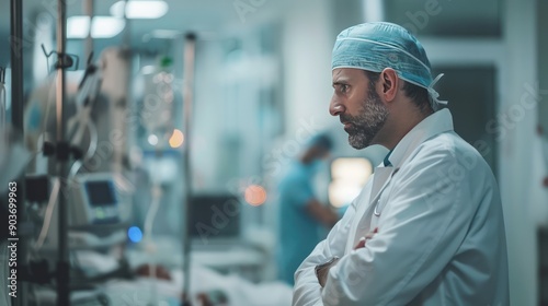 doctor, looking, watch, while, monitoring, condition, hospital, room, people, woman, person, business, businessman, city, street, man, couple, face, smiling, smile, casual attire, photogenic, guy, men at work, boy, lifestyle