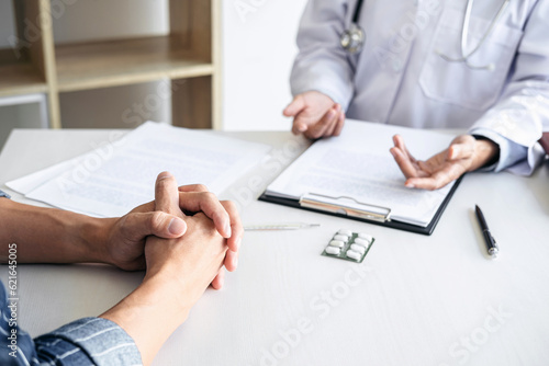 Doctor presenting report of diagnosis, symptom of disease and re