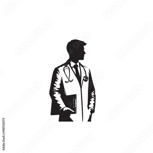 doctor, stethoscope, occupation, uniform, male, person, illustration, man, adult, vector, black-and-white, clip art, cut-out, arms crossed, labcoat, computer graphic, front view, holding, professional occupation, white background, clinic, clipboard, confidence, disease, expertise, female, graphic, health care, hospital, human, job, medicine, nurse, outline, physician, profession, professional, silhouette, standing, vertical, woman, avatar, full-length