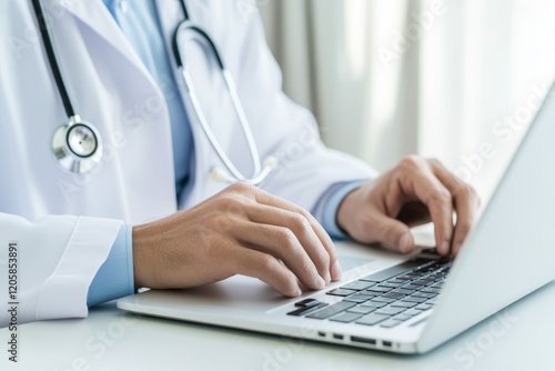 doctor, laptop, medicals, office, health care, typing, stethoscope, note, professional, working, technology, environment, system, work, care, physician, concentration, computer, health, record, clinic, equipment, coat, online, communication, provider, modern, setting, digital, practice, serious, efficiency, desk, management, documentation, hospital, visit