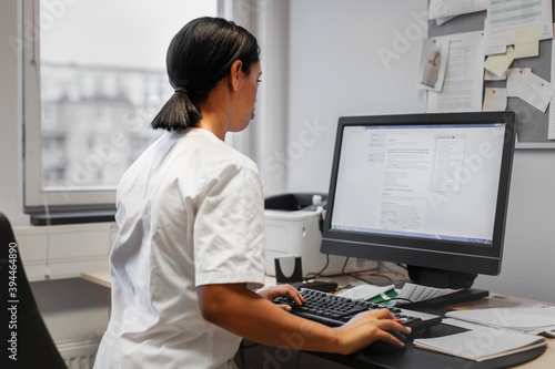 doctor, caring, medical care, people, hospital, workplace, working, horizontal, colours, woman, computer, computer-screen, screen, indoor, stockholm, sweden, scandinavia, adult