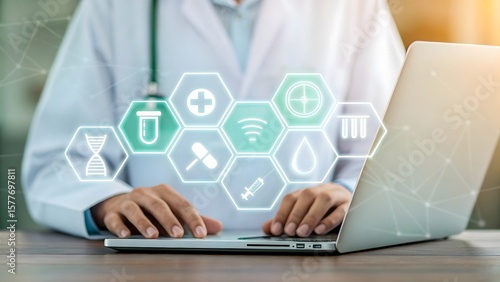 Doctor using technology for healthcare digital health, telehealth, medical innovation