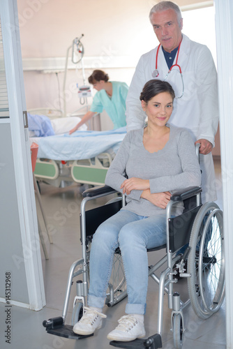 doctor, wheelchair, patient, medicine, portrait, profession, young, woman, man, professional, disabled, disability, health, indoor, male, medic, disease, hospital, handicapped, health care, human, female, room, treatment, sick, person, movement, ward, paraplegic