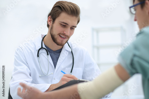 doctor writing a prescription to her patient,