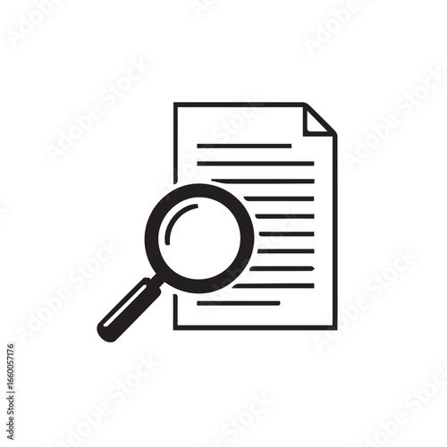 Document Analysis Icon Magnifying Glass Examining a Page of Text for Research and Information