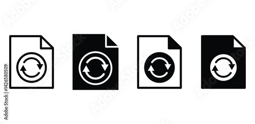 Document Update Icon Set Black and White Refresh Symbols Vector Design