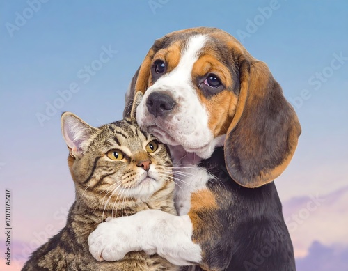 Dog and cat hugging