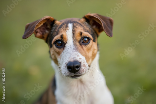 dog, looking, facing, animal, mammal, canino, pet, head, eye, ear, fur, white, brown, black, muzzle, cute, adorable, portrait, day, grass, green, nature, domestic, closeup, one animal, eye contact, curious, expression, no people, alert, sitting, staring, attention, mammalian, vertebrate, doggy, kennel, doggy, animal portrait, natural light