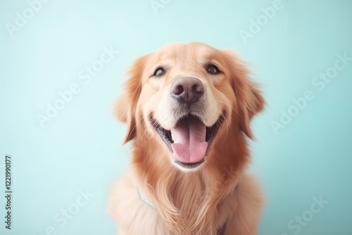 facial expression, domestic animals, golden retriever, hi-res, downloadable, animal head, minimalism, mouth open, one animal, retriever, closeup, portrait, panting, smiling, yawning, animal, canino, lovely, mammal, humor, image, puppy, photo, blue, cute, nose, dog, pet, hd