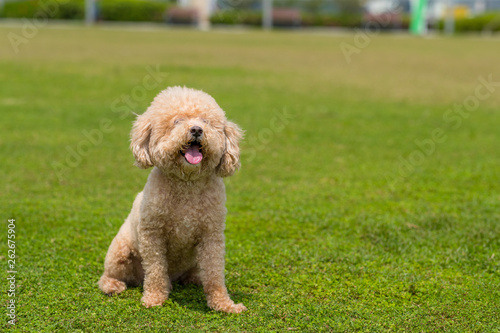 to sit, seat, poodle, dog, nature, park, animal, grass, canino, beautiful, purebred, puppy, young, mammal, pet, meadow, down, lying, hot, heat, go, out, toy, brown, sweet, small, play, funny, domestic, lawn, green, landscape, summer, cute, lovely, adorable, happy, smile, excite, cheerful