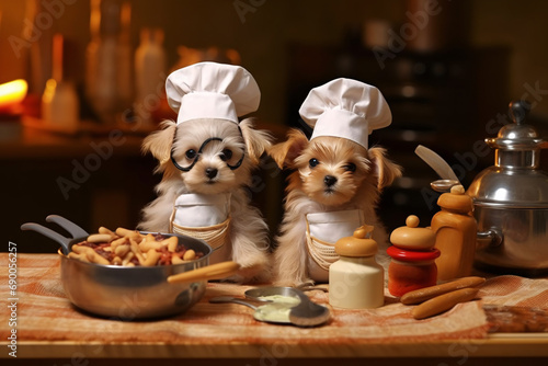 dog, costume, dressed, dog, puppy, cute, fur, terrier, cook, cooking, chef, food, kitchen, baby, children, hat, children, eatery