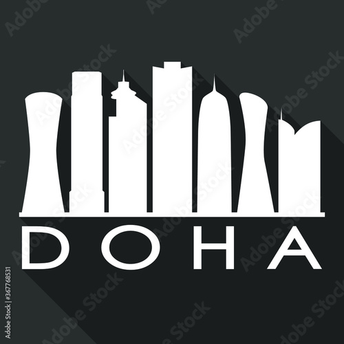 Doha Flat Icon Skyline Silhouette Design City Vector Art Famous Buildings.