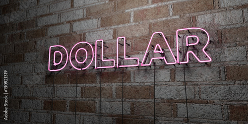 DOLLAR - Glowing Neon Sign on stonework wall - 3D rendered royalty free stock illustration. Can be used for online banner ads and direct mailers..