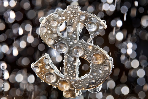 Dollar Sign Covered in Water Drops