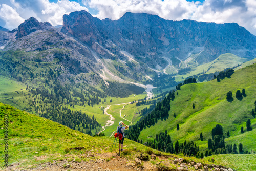 dolomite, countryside, view, hiker, grazing, green, alpes, summer, mountain, trekking, hiking, nature, afoot, walk, hike, travel, outdoors, adventure, excursionist