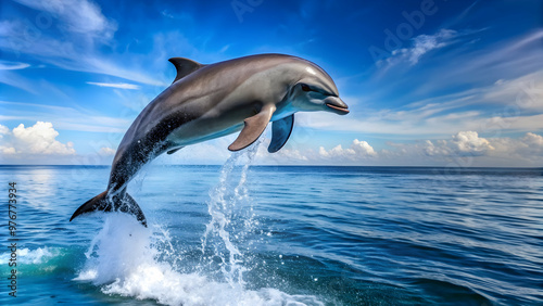 Dolphin jumping out of the water, showcasing its grace and agility, dolphin, marine life, aquatic mammal, water, wildlife, ocean, nature